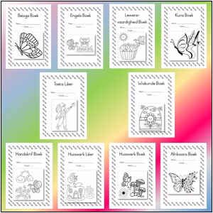 Make Classwork Fun with exciting 🦋Butterfly🦋themed book covers. Ten subject books covered: English, Afrikaans, Mathematics, Life Skills, Handwriting, Art, Homework file, Homework book, Assessment file, Busy book. Available in English and Afrikaans.