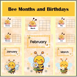Bee themed months of the years and birthday chart classroom posters. Colourful and engaging, designed to captivate the children.